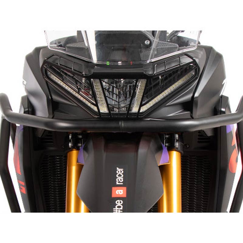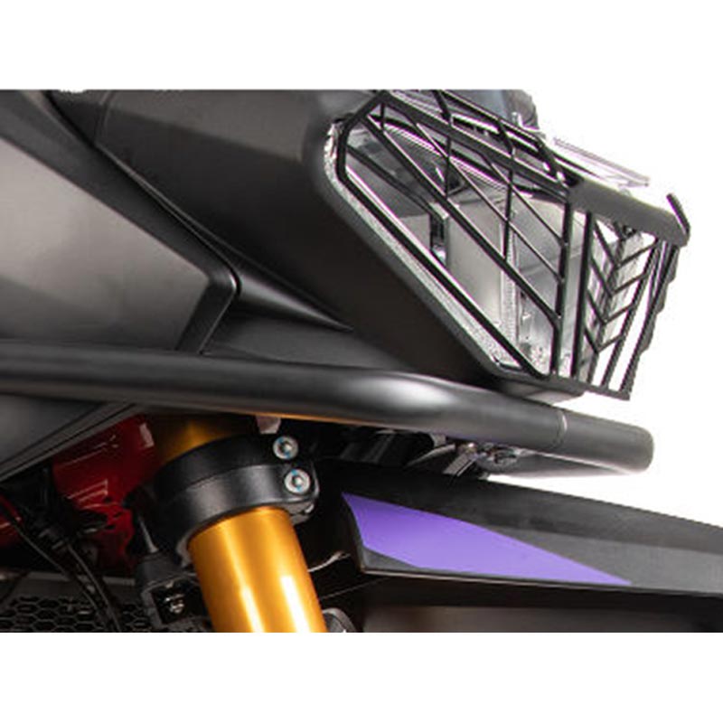 Développée spécifiquement pour la Aprilia Tuareg 660 Rally, cette grille s’intègre harmonieusement au design d’origine de la moto. Elle épouse parfaitement les lignes du phare sans altérer l’esthétique globale, tout en apportant une touche visuelle plus robuste et orientée adventure.